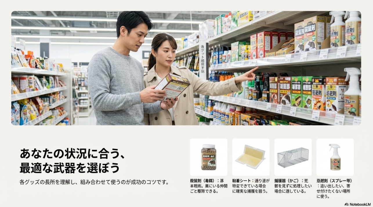ネズミ駆除の市販おすすめって、結局どれが効くの?って悩みますよね。 毒餌(殺鼠剤)や粘着シート、忌避剤、くん煙剤、超音波…種類が多すぎて、買う前から疲れるやつです。 しかも、スーパーラットみたいに薬剤に強い個体が増えていると言われていて、... -