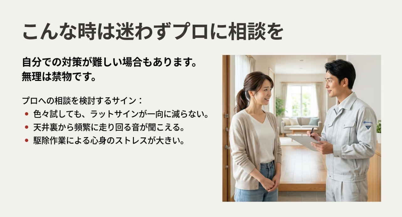 しかも、スーパーラットみたいに薬剤に強い個体が増えていると言われていて、適当に選ぶと「お金だけ飛んで、被害は続く」になりがち。 ここ、いちばん避けたいところかなと思います。